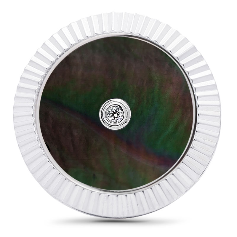 Lining Cufflinks Gray Mother Of Pearl with Two Diamonds - 925 Sterling Silver