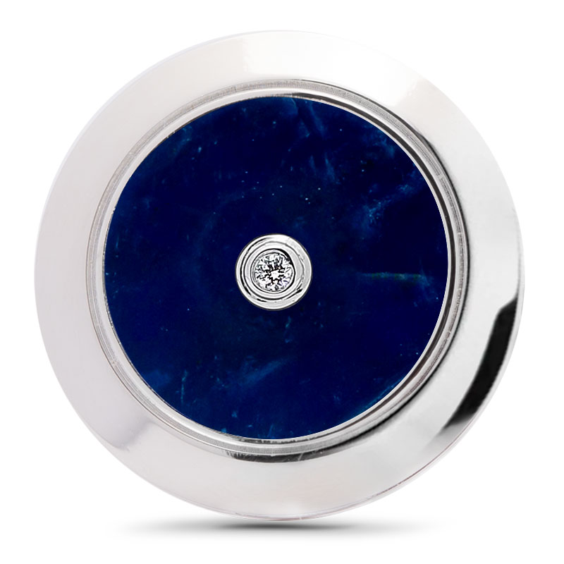 Plain Cufflinks Sodalite with Two Diamonds - 950 Sterling Silver
